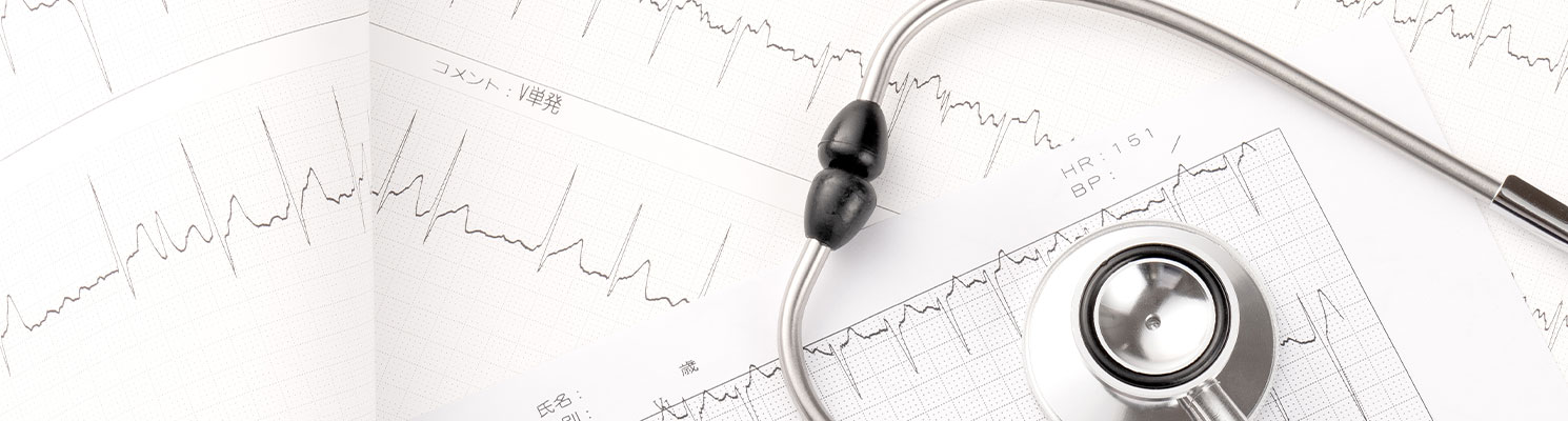 心電図検査では、心臓の動きを電気的な波形として記録し、動悸や息切れ、胸の違和感があるときに、心臓の状態に問題がないかを確認します。健診で異常を指摘された場合の再検査や、症状に応じた評価にも用います。短時間で行える、お身体への負担が少ない検査です。